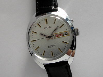 Механизм типичный Слава, с двумя заводными барабанами и автоподзаводом. Противоударное устройство,