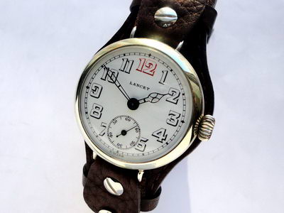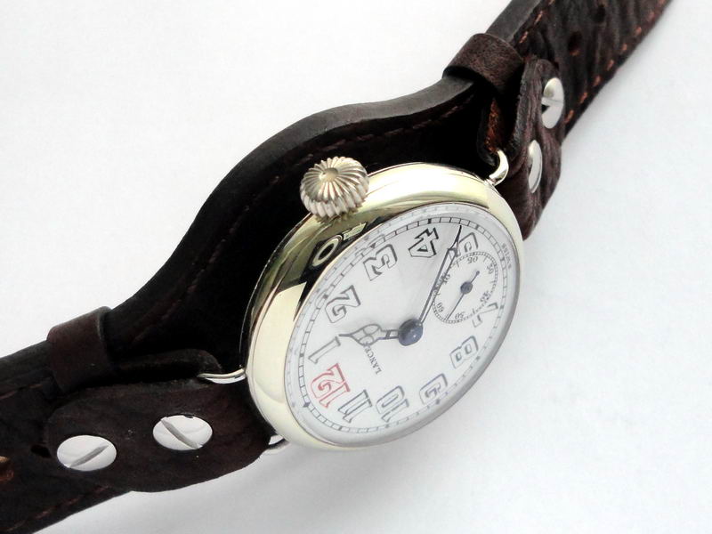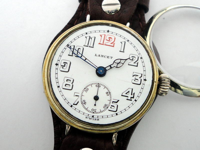 Циферблат эмалевый, с военным шрифтом цифр, подписан LANCET SWISS,