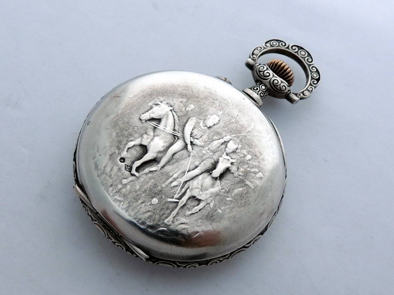 Классические карманные часы с тематическим барельефом, сцена из игры